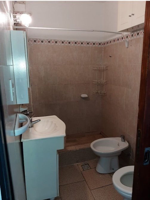 Baño Piso y paredes con revestimiento en cerámica esmaltada. Instalado con vanitory, inodoro, bidet y ducha americana.